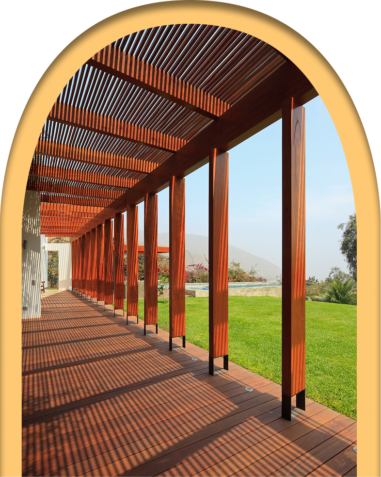Strong construction and accurate positioning ensure stability while enhancing the overall layout of the garden. Careful planning integrates the pergola naturally into the landscape.